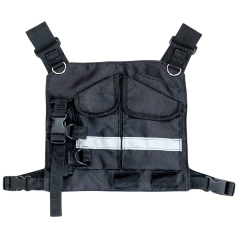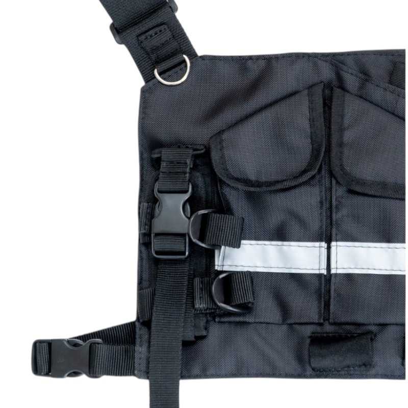 Regulowana uprząż piersiowa z dwiema kieszeniami na radiotelefony, wykonana z wytrzymałego materiału. Umożliwia bezpieczne przenoszenie dwóch urządzeń łączności i szybki dostęp do nich w każdej sytuacji operacyjnej.