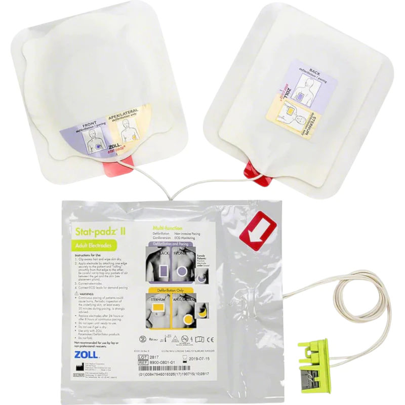 Elektrody STAT-PADZ II do defibrylatora ZOLL AED Plus to niezawodne akcesorium zapewniające szybkie i skuteczne przeprowadzenie defibrylacji. Dzięki wysokiej jakości wykonania i łatwości aplikacji są idealnym rozwiązaniem do stosowania w przestrzeniach publicznych i profesjonalnych jednostkach ratunkowych.