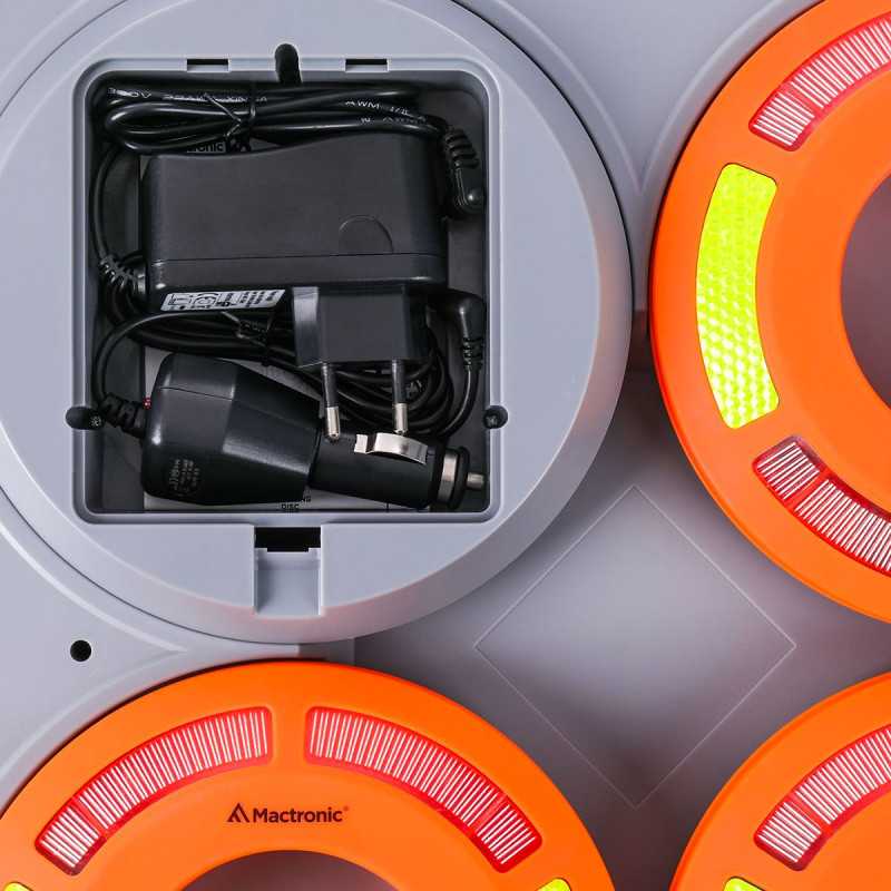 Dyski sygnalizacyjne zsynchronizowane Mactronic O-FLARE, ładowalne, zestaw [6x dysk, ładowarka, walizka] kolor amber to profesjonalny zestaw świetlnych urządzeń ostrzegawczych zaprojektowany z myślą o służbach ratowniczych, technicznych i porządkowych. Każdy z sześciu dysków LED emituje intensywne światło ostrzegawcze w kolorze bursztynowym (amber), zapewniając wysoką widoczność w trudnych warunkach – również w nocy, mgle czy podczas opadów. Dyski można zsynchronizować ze sobą, dzięki czemu migają w tym samym rytmie, tworząc czytelny i zorganizowany ciąg sygnałów ostrzegawczych. Urządzenia są odporne na wodę (IP68), pył, uderzenia i zgniatanie, co pozwala na bezpieczne ich stosowanie nawet w najtrudniejszym terenie – np. na drogach, torach kolejowych, lotniskach czy w strefach przemysłowych. W zestawie znajduje się praktyczna walizka transportowa z funkcją ładowarki, która umożliwia jednoczesne ładowanie wszystkich dysków za pomocą jednego przewodu zasilającego.