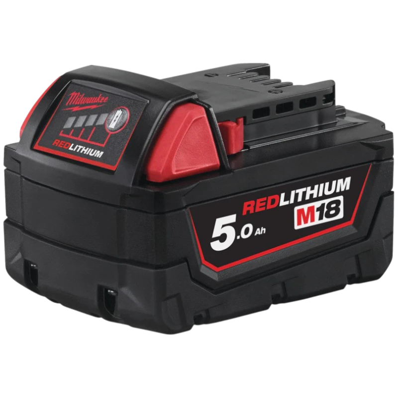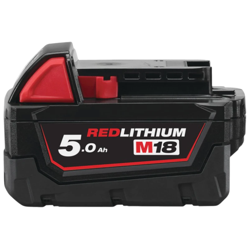 Solidny akumulator litowo-jonowy 18 V o pojemności 5.0 Ah, kompatybilny z narzędziami Milwaukee z serii M18. Zapewnia długi czas pracy i doskonałą wydajność w wymagających warunkach.
