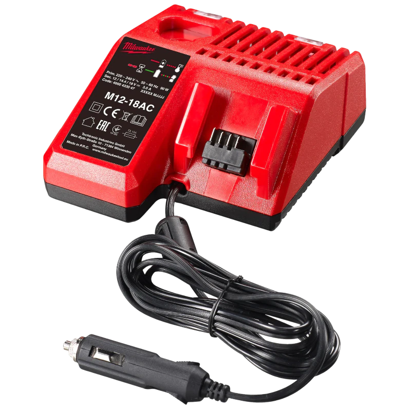 Ładowarka samochodowa Milwaukee M12-18AC umożliwia szybkie ładowanie akumulatorów M12 i M18 w pojeździe. Dzięki zasilaniu z gniazda 12V DC idealnie sprawdzi się w terenie i podczas pracy mobilnej. Wyposażona w inteligentny system REDLINK™ zapewniający ochronę akumulatorów przed przegrzaniem i przeciążeniem.