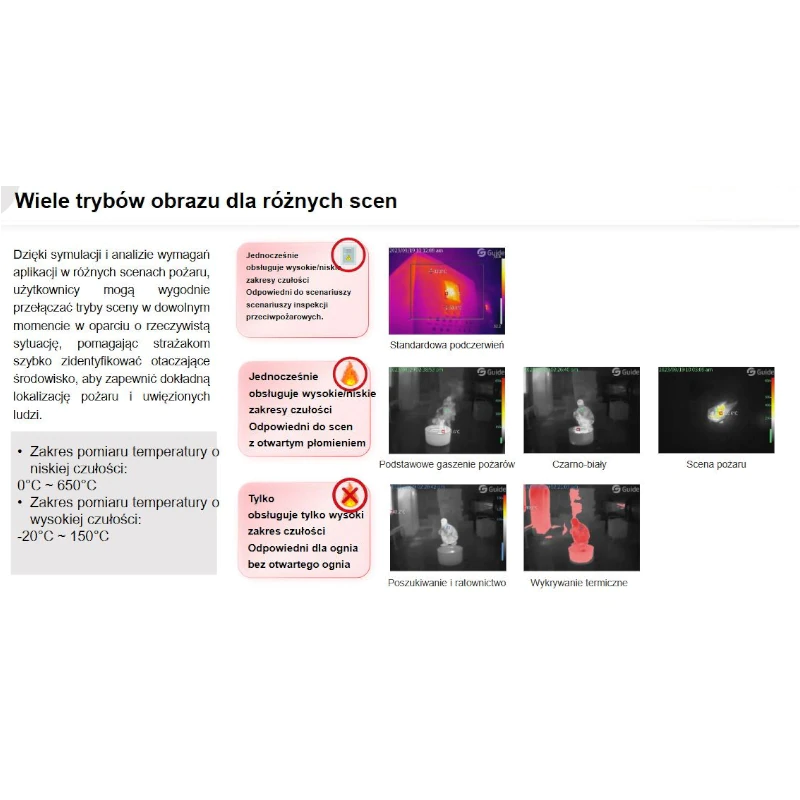 Tryby pracy kamery termowizyjnej Guide PR410Podstawowy tryb gaszenia pożarów:
