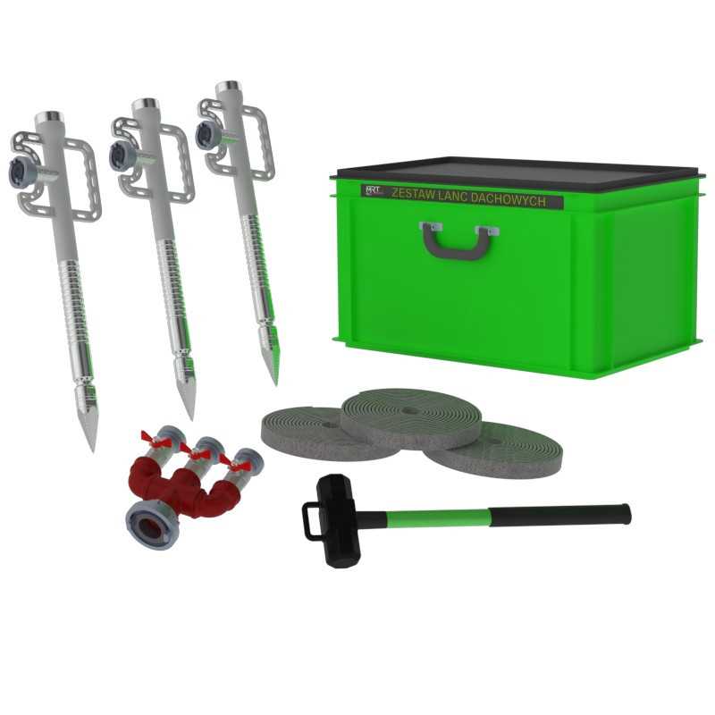 Kompaktowy zestaw narzędzi do gaszenia pożarów ukrytych, składający się z trzech mini lanc MKD 35-350. Idealny do szybkiego przebicia dachów lub stropów i podania środka gaśniczego bez konieczności rozbierania konstrukcji. Wysoka skuteczność i łatwość użycia.