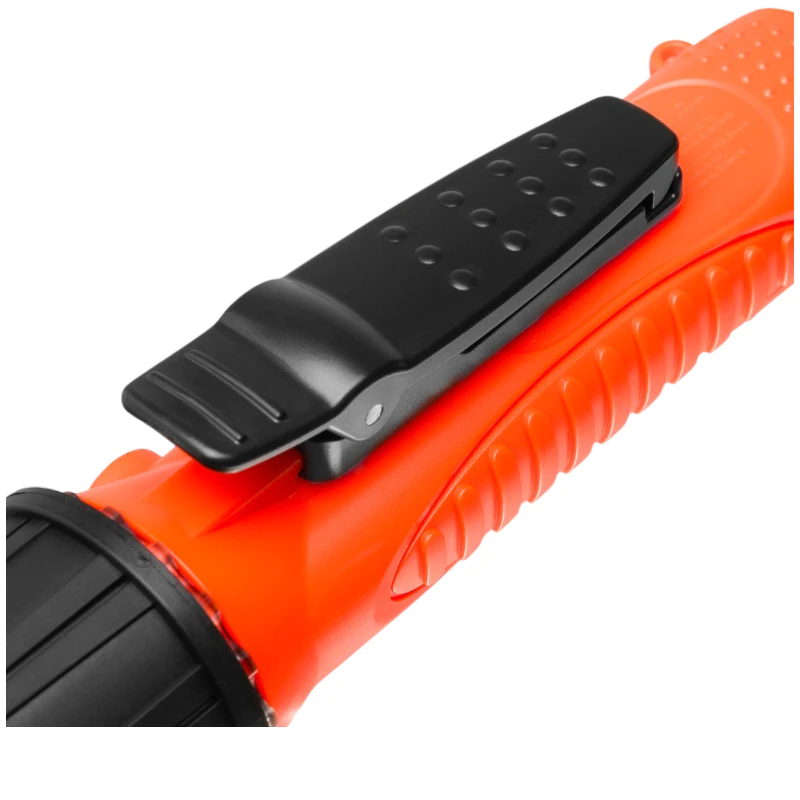 Latarka ręczna o mocy 290 lumenów, przeznaczona do użytku w trudnych warunkach. Zasilana czterema bateriami AA, posiada wytrzymałą obudowę oraz klips mocujący. Certyfikowana do pracy w strefach zagrożonych wybuchem. W zestawie: latarka, baterie AA, klips.