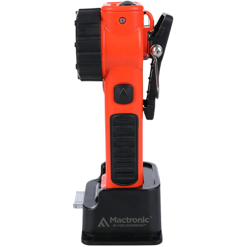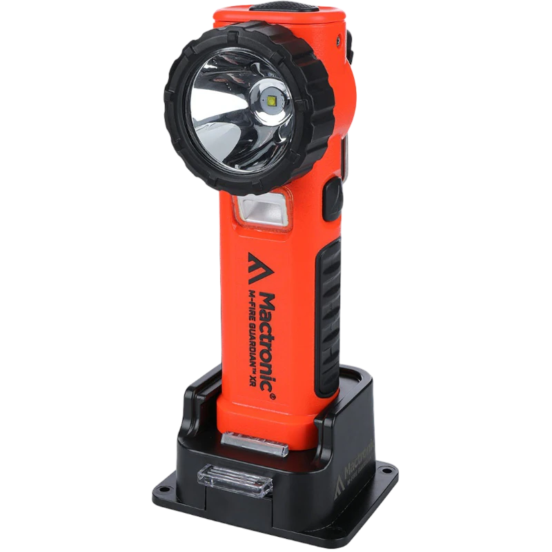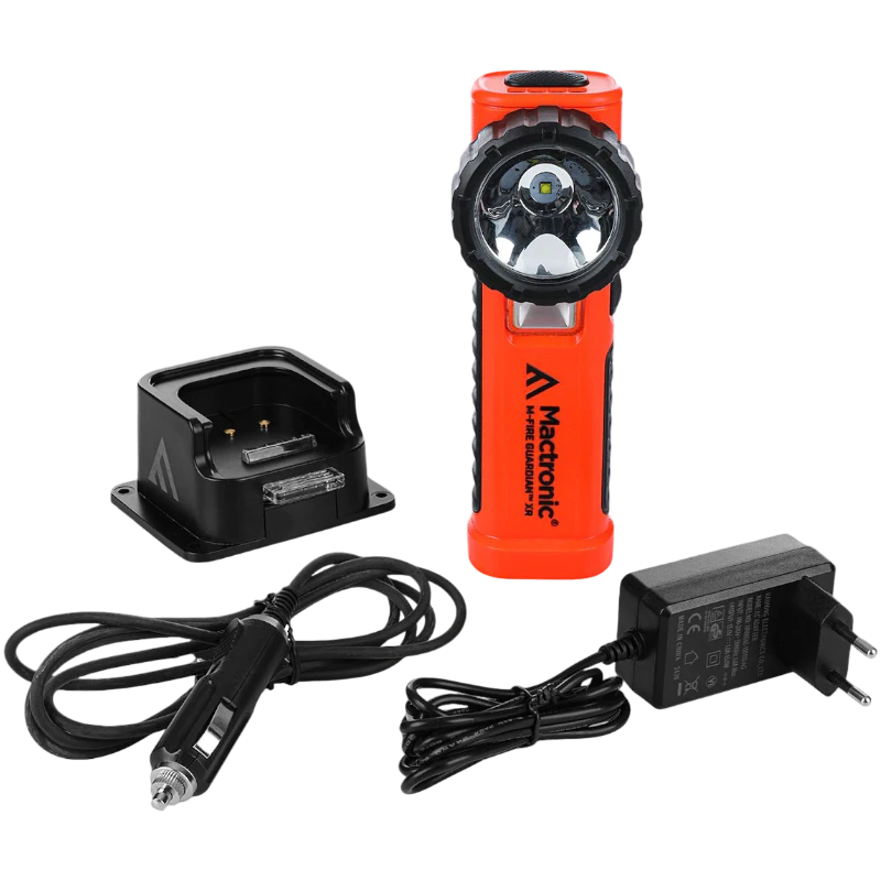 Latarka kątowa akumulatorowa M-FIRE GUARDIAN XW ze światłem białym, ATEX to specjalistyczne narzędzie oświetleniowe przeznaczone do pracy w strefach zagrożonych wybuchem, wyposażone w certyfikat ATEX. Produkt ten został opracowany z myślą o służbach ratowniczych, zwłaszcza strażakach, którzy potrzebują niezawodnego i bezpiecznego źródła światła w ekstremalnych warunkach. Latarka oferuje intensywny strumień światła o mocy 240 lumenów w kolorze białym, co gwarantuje dobrą widoczność nawet w zadymionych przestrzeniach. Jej kątowa konstrukcja oraz możliwość zamocowania do ubrania sprawiają, że ręce użytkownika pozostają wolne. Zasilana jest wydajnym akumulatorem, a w zestawie znajdują się: stacja dokująca, ładowarka sieciowa 230V oraz ładowarka samochodowa 12V, co umożliwia ładowanie w różnych sytuacjach operacyjnych.