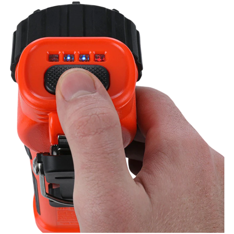 📉 4-stopniowy wskaźnik baterii – widoczny z góry, nawet podczas przypięcia do ubrania