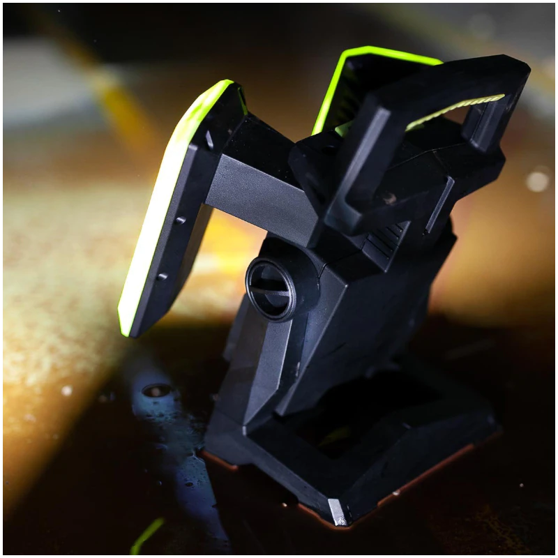 Lampa warsztatowa – mini najaśnica DualBEAM została zaprojektowana do pracy w przemyśle, warsztatach oraz na placach budowy. Całość konstrukcji opiera się na dwóch, niezależnych głowicach ruchomych w zakresie 180 stopni oraz podstawie urządzenia, która pozwala na odchylenie do 90 stopni. Dzięki temu uniwersalność DualBEAM czyni ją wyjątkowo przydatnym urządzeniem podczas prac o różnym charakterze. Najaśnica skutecznie rozprasza ciemności światłem o mocy nawet 4500 lumenów emitowanym przez 120 diod LED. Maksymalny czas pracy urządzenia w trybie ekonomicznym na jednym naładowaniu akumulatora to z kolei 12 godzin. Najaśnica DualBEAM zasila zewnętrzny akumulator wpinany do obudowy. Konstrukcja została wykonana z solidnego i twardego tworzywa, zapewniającego odpowiednią ochronę przed uszkodzeniami fizycznymi, a także przed wodą i zabrudzeniami, co potwierdza klasa IP54. Górna część obudowy jest zintegrowana z rączką transportową, mogącą pełnić rolę także haka do zawieszania. Podobnie rotowana podstawa ma wyprofilowane nogi umożliwiające blokowanie najaśnicy w pożądanych pozycjach.