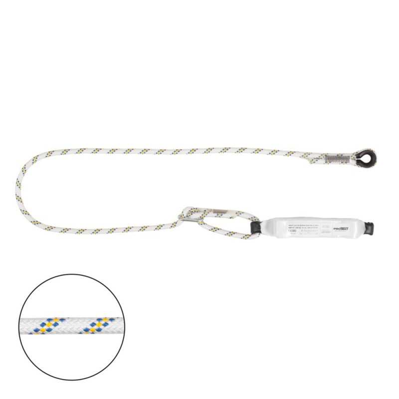 Amortyzator z regulowaną linką bezpieczeństwa i zatrzaśnikami AZ003 i AZ023 przeznaczony do pracy na wysokości. Linka taśmowa 1 m z absorberem AW137, zgodna z EN 355, odporna na przetarcia i czynniki atmosferyczne.
