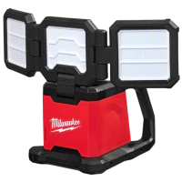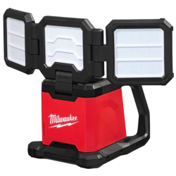 Wielokierunkowe oświetlenie LED o wysokiej jasności z trzema niezależnie obracanymi głowicami, zasilane akumulatorami M18. Wytrzymała obudowa, klasa szczelności IP54, uchwyt transportowy, możliwość montażu na statywie.