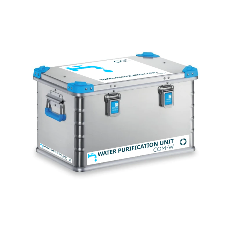 System awaryjnego uzdatniania wody COM-W to mobilne, autonomiczne urządzenie przeznaczone do szybkiego uzdatniania wody z naturalnych źródeł w sytuacjach kryzysowych, katastrofach naturalnych oraz operacjach ratowniczych. Urządzenie działa niezależnie od dostępu do sieci energetycznej dzięki zastosowaniu zestawu zasilania: akumulatora oraz panelu fotowoltaicznego. Wydajność systemu wynosi od 600 do 900 litrów na godzinę, co pozwala na zapewnienie zapasu wody pitnej dla zespołów ratowniczych lub lokalnych społeczności. Konstrukcja oparta jest na modułowym systemie filtracji, w tym filtrach mechanicznych i węglowych, z możliwością zastosowania filtrów specjalistycznych lub lamp UV.