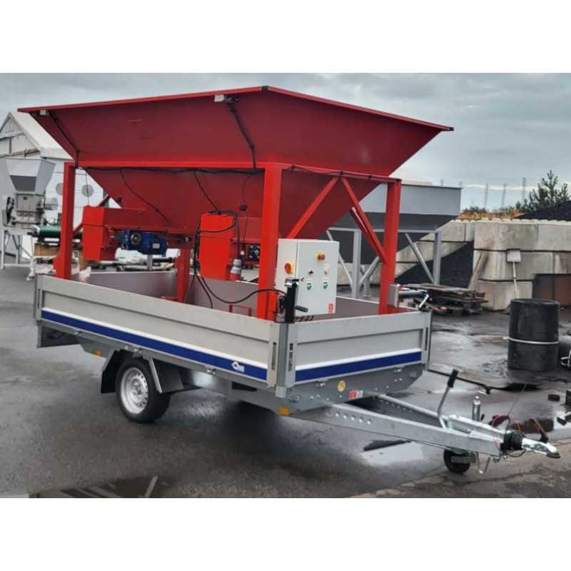 To zaawansowane urządzenie do pakowania piasku w worki, zintegrowane z przyczepą towarową posiadającą dopuszczenie do ruchu drogowego. Konstrukcja umożliwia szybkie przemieszczanie sprzętu bez konieczności użycia specjalistycznego transportu. Dwustanowiskowy układ pracy oraz duży kosz zasypowy pozwalają na intensywną eksploatację w warunkach kryzysowych. To mobilne rozwiązanie do szybkiego reagowania w sytuacjach zagrożenia.
