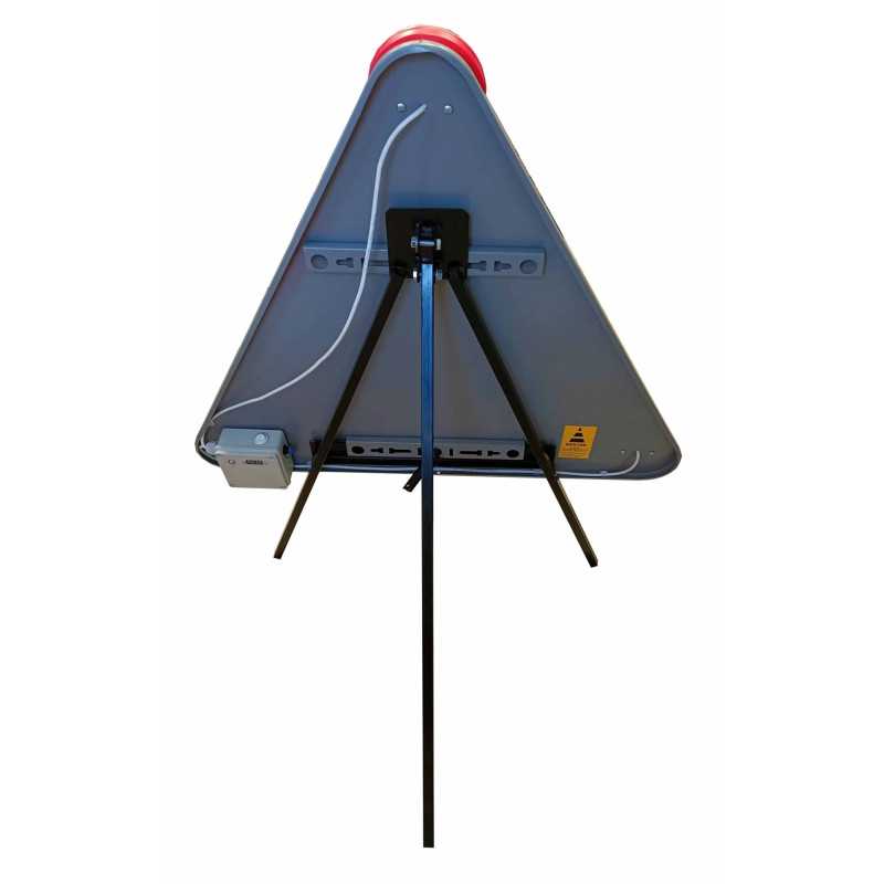 Znacznik ostrzegawczy z diodowym pulsatorem o średnicy 750 mm, zasilany akumulatorem Li-ion, zapewnia widoczność w trybie całodobowym z regulacją błysku dzień/noc. W zestawie stojak. Czas pracy: 30 h. Waga: 7,5 kg. Produkt polski.