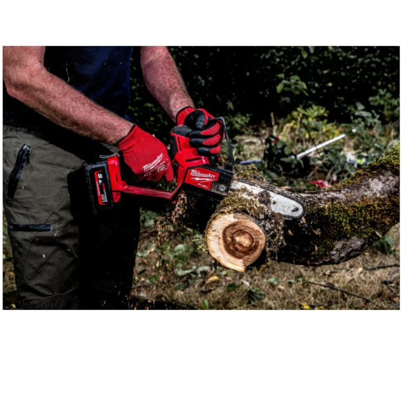 Kompaktowa pilarka do gałęzi z prowadnicą 20 cm i bezszczotkowym silnikiem, idealna do prac ogrodniczych, arborystycznych i ratowniczych w ciasnych przestrzeniach. Wersja bez akumulatora i ładowarki – dla użytkowników systemu M18™.