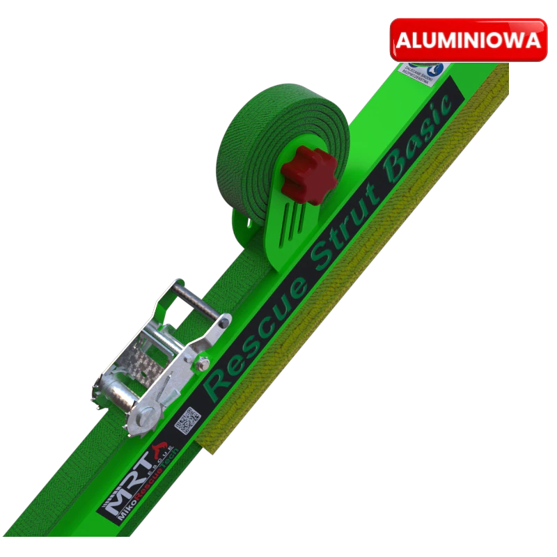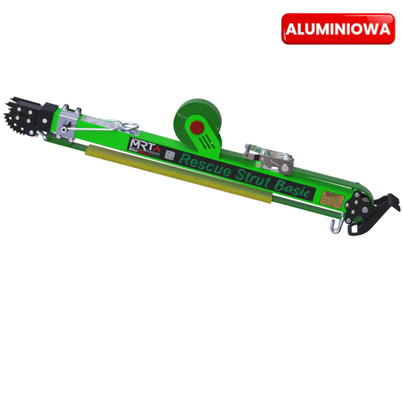Lekka i wytrzymała podpora ratownicza z aluminium, przeznaczona do stabilizacji elementów konstrukcyjnych podczas działań technicznych i ratowniczych. Model teleskopowy z regulacją długości i blokadą pozycji.