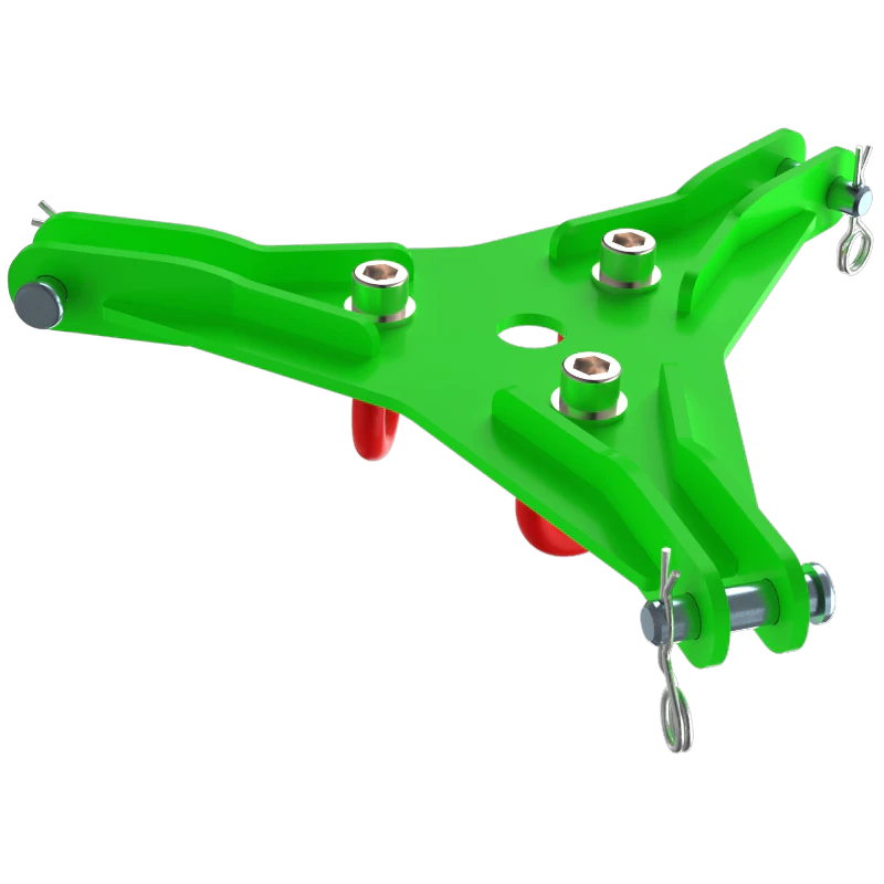 Głowica umożliwiająca połączenie trzech podpór PTA w stabilny trójnóg, wykonana z lekkiego i wytrzymałego stopu, dostosowana do pracy z podporami o nośności do 500 kg. Zapewnia szybki montaż i wysoką wytrzymałość operacyjną.