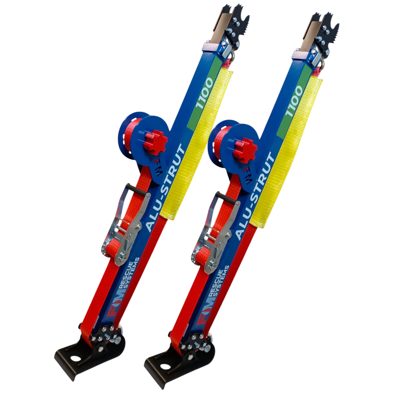 Podpora ALU STRUT 1100 FMRS to nowoczesne urządzenie stabilizacyjne wykorzystywane przez służby ratownicze do zabezpieczania pojazdów oraz lekkich konstrukcji. Wykonana została z anodowanego aluminium, co zapewnia wysoką wytrzymałość przy jednoczesnym zachowaniu niskiej wagi. Dzięki teleskopowej budowie, możliwa jest szybka regulacja długości podpory w zakresie od 1,1 m wzwyż (w zależności od konfiguracji). Produkt zaprojektowano tak, aby umożliwić jego zastosowanie zarówno w pozycji pionowej, jak i pod kątem. Na końcach podpory znajdują się specjalne głowice robocze — jedna z podstawą podporową, druga z uchwytem do mocowania pasów lub łańcuchów. System szybkiej blokady długości pozwala na szybkie przygotowanie podpory do działania, nawet w trudnych warunkach terenowych. ALU STRUT 1100 FMRS jest kompatybilna z pozostałymi elementami systemu FMRS, umożliwiając tworzenie wielopunktowych układów stabilizacyjnych.