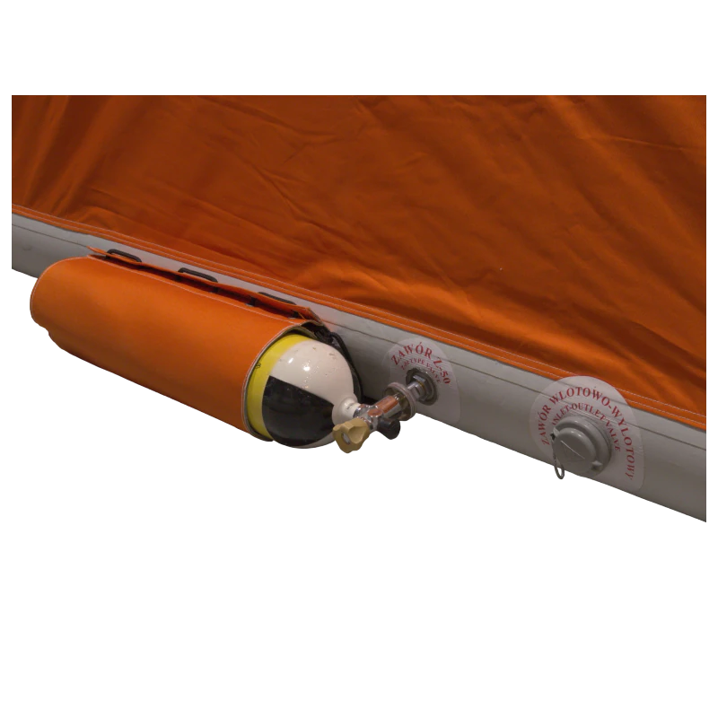 🧳 Kompaktowy pakunek – po złożeniu i wraz z butlą:1,10 × Ø 0,6 m ➤ pasuje do skrytki typowego samochodu ratowniczo-gaśniczego.