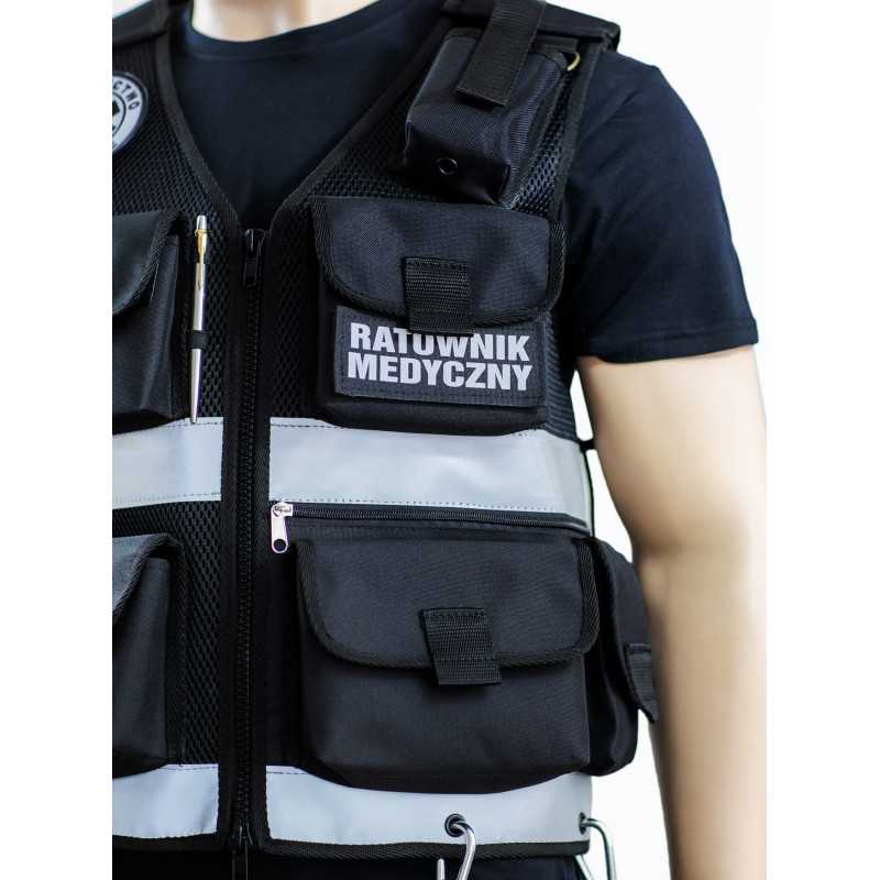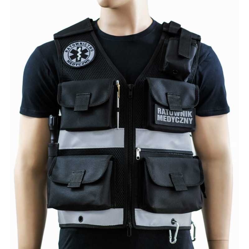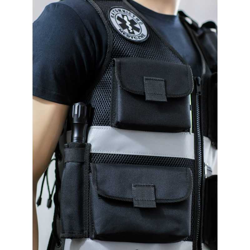 Wykonana z wytrzymałej siatki i nieprzemakalnej kordury kamizelka taktyczna oferuje wiele funkcjonalnych kieszeni, odblaskowe oznaczenia oraz możliwość dopięcia zestawów medycznych. Idealna dla ratowników i służb mundurowych.