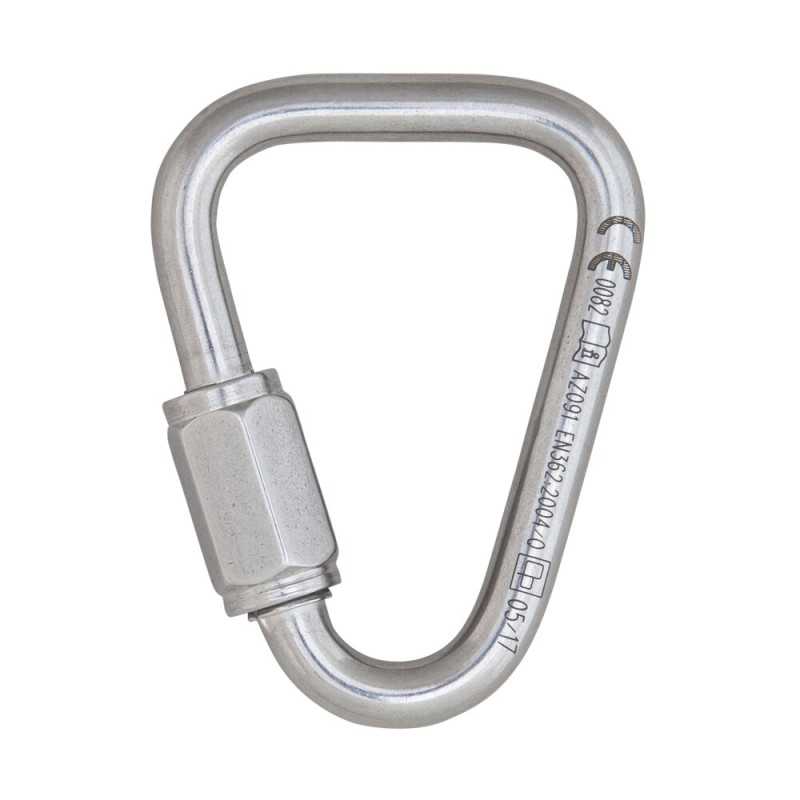 AZ 091 Screwlink to stalowe ogniwo trójkątne z nakrętką blokującą, które zapewnia trwałe i pewne połączenie w systemach asekuracyjnych i ratowniczych.
