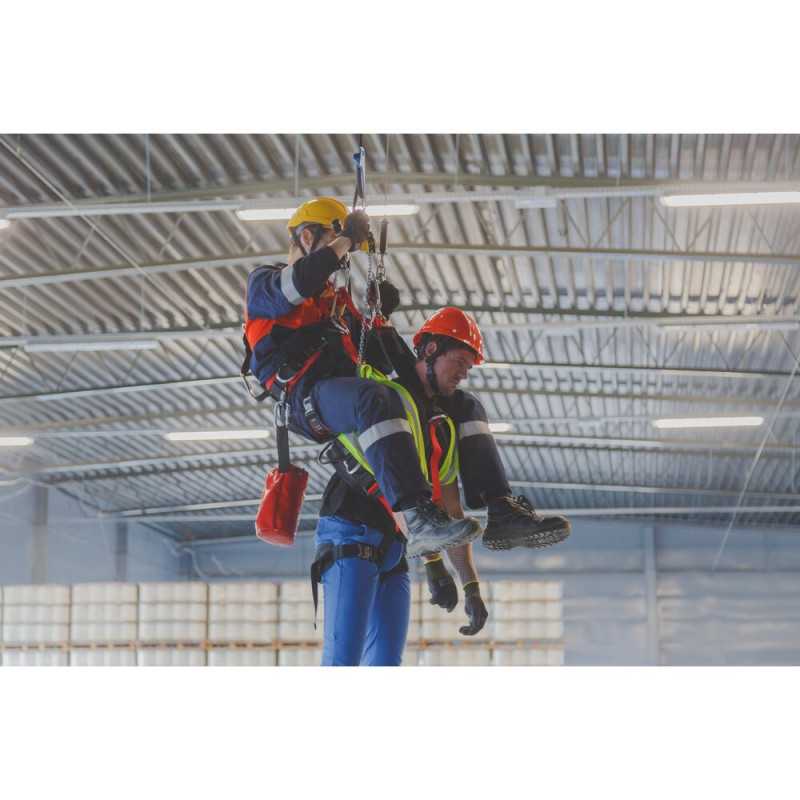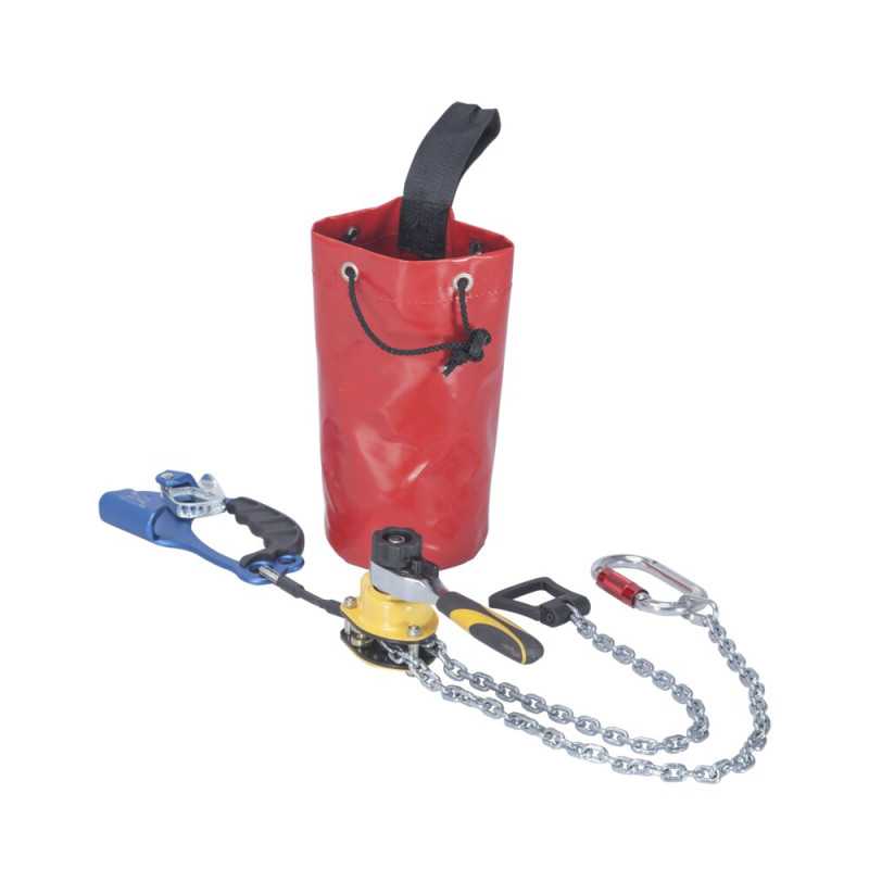 Pomocniczy zestaw ewakuacyjny, umożliwiający bezpieczne odłączenie urządzenia od liny bez konieczności jej przecinania. Zestaw zawiera elementy mocujące i karabinki, dzięki którym ewakuacja przebiega szybko i bezpiecznie.