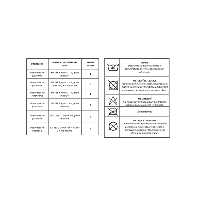 Rękawice Skytec Sirocco nie są przeznaczone do pracy w warunkach wysokiej temperatury i nie zapewniają ochrony przed ogniem – nie zastępują rękawic strażackich do akcji gaśniczych. Nie powinny być również używane przy kontakcie z substancjami chemicznymi, cieczami żrącymi lub materiałami biologicznie niebezpiecznymi. Ze względu na konstrukcję ochronną skupioną na przecięciu i ścieraniu, nie gwarantują pełnej ochrony przed dużym naciskiem punktowym lub energią kinetyczną. Rękawice należy regularnie sprawdzać pod kątem przetarć i uszkodzeń, które mogą obniżyć ich skuteczność ochronną.