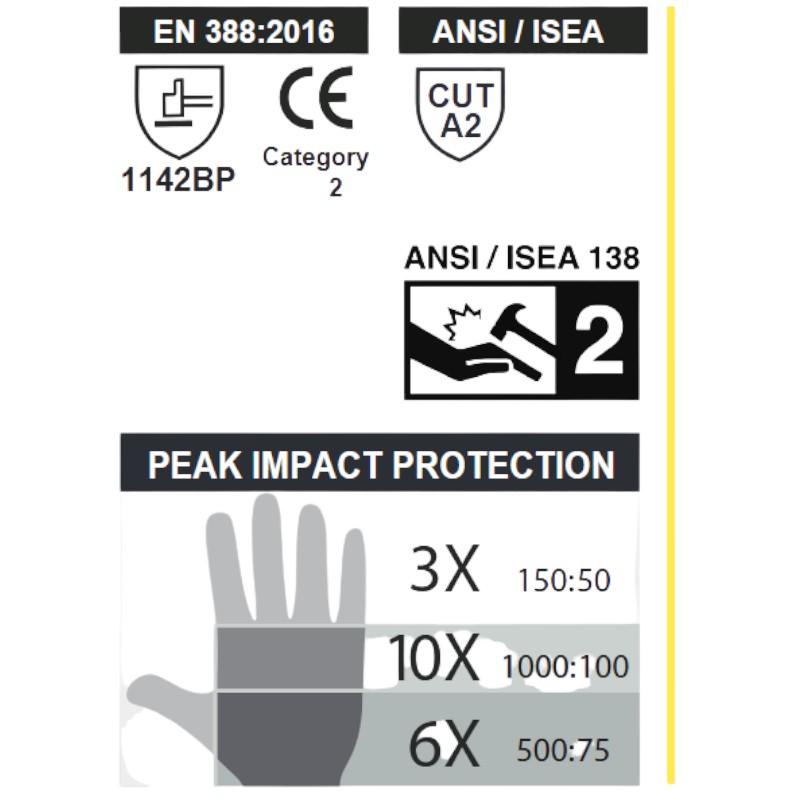 • Certyfikat CE dla normy EN388, wynik 1142BP,