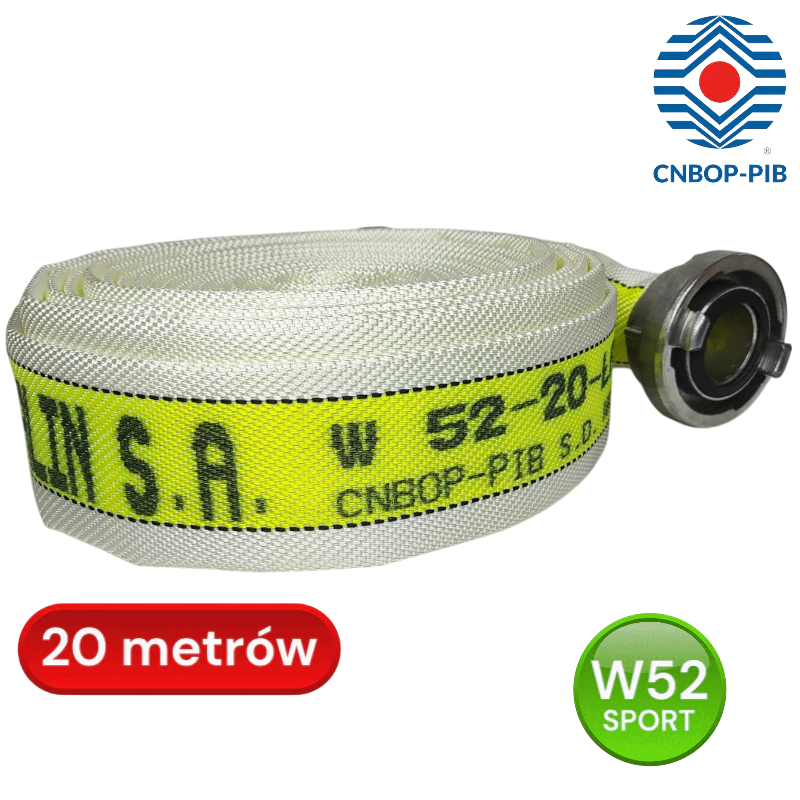 Wąż sportowy S 52 to profesjonalny wąż pożarniczy stosowany w zawodach strażackich oraz ćwiczeniach. Wykonany z lekkiego materiału o wysokiej odporności, wyposażony w wkładkę poliuretanową, co zapewnia doskonały przepływ wody i wytrzymałość. Posiada luminescencyjne oznaczenia zwiększające widoczność w trudnych warunkach.