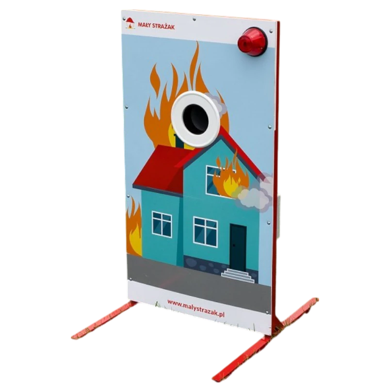 Elektroniczna tarcza nalewowa w formie domku z akumulatorem, przeznaczona do zawodów MDP zgodnych z regulaminem CTIF. Zestaw zawiera wbudowany czujnik, akumulator, dźwiękowy sygnalizator trafienia i wyświetlacz LED.