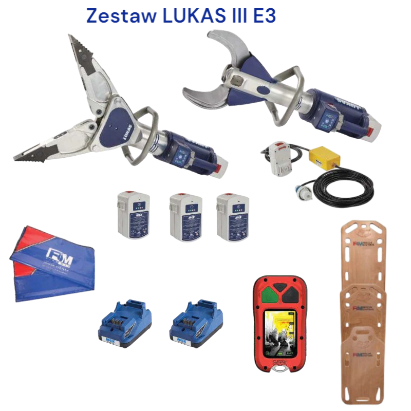Zestaw narzędzi hydraulicznych LUKAS III e3 to kompletny zestaw do profesjonalnych działań ratowniczych, składający się z nożyc hydraulicznych S 378 e3, rozpieracza ramieniowego SP 555 e3 oraz agregatu hydraulicznego P 635 SG Turbo. Narzędzia te zostały zaprojektowane do pracy w najtrudniejszych warunkach atmosferycznych i środowiskowych, w tym pod wodą. Wyposażone w akumulatory Li-Ion, które zapewniają długotrwałą pracę bez konieczności podłączania do sieci, zestaw LUKAS III e3 gwarantuje niezawodność i wysoką wydajność w każdej sytuacji ratowniczej.