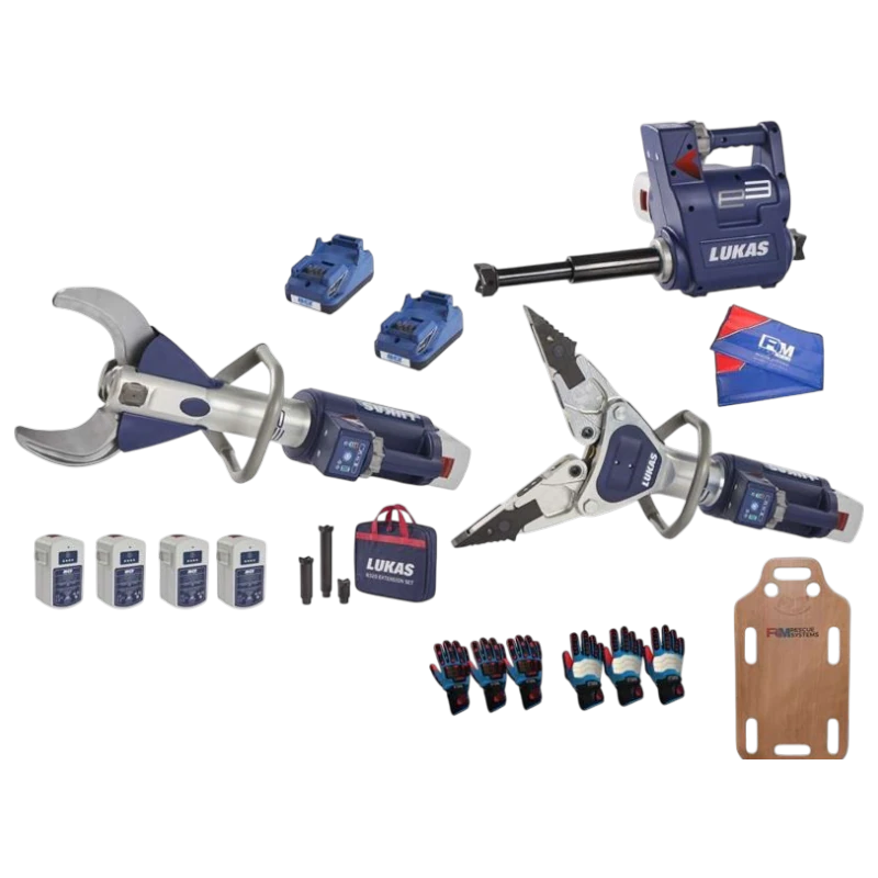 Zestaw narzędzi hydraulicznych LUKAS IV e3 to nowoczesny zestaw akumulatorowych narzędzi ratowniczych zaprojektowany do pracy w ekstremalnych warunkach. Składa się z nożyc hydraulicznych S 378 e3, rozpieracza ramieniowego SP 333 e3, rozpieracza kolumnowego R 320 e3, czterech akumulatorów Li-Ion, zasilacza sieciowego, dwóch ładowarek oraz maty narzędziowej. Każde urządzenie w zestawie jest przystosowane do pracy pod wodą do głębokości 3 metrów, co czyni go idealnym do akcji ratowniczych w trudnych warunkach atmosferycznych i wodnych.