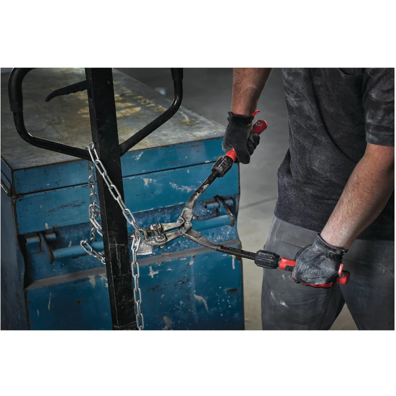 Szczypce tnące przegubowe Milwaukee 610-770 mm to profesjonalne narzędzie do cięcia prętów, siatek i elementów z metalu. Regulowana długość ramion pozwala na zwiększenie siły nacisku, co ułatwia pracę. Ostrza wykonane z hartowanej stali zapewniają wysoką trwałość i precyzyjne cięcie nawet twardych materiałów.