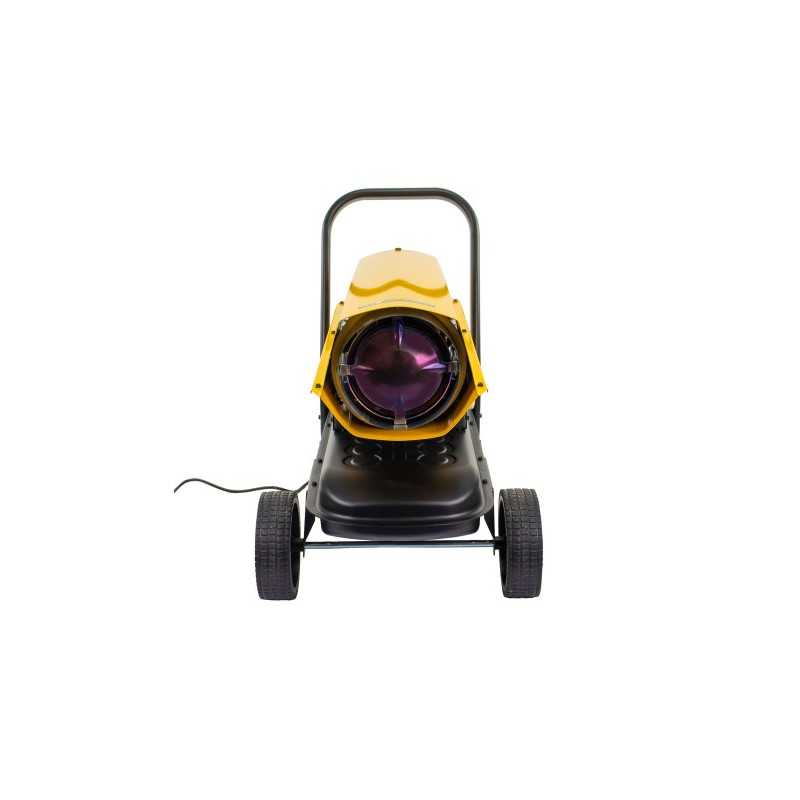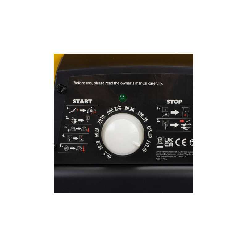Nagrzewnica JCB [20 kW] JCB-SH70DP24 to przenośne urządzenie grzewcze zasilane olejem napędowym, przeznaczone do szybkiego i skutecznego ogrzewania pomieszczeń przemysłowych, technicznych oraz terenów działań ratowniczych. Model ten generuje moc grzewczą na poziomie 20 kW i wyposażony jest w 19-litrowy zbiornik paliwa, co umożliwia wielogodzinną pracę bez konieczności tankowania. Urządzenie działa na zasadzie bezpośredniego spalania paliwa, dzięki czemu efektywnie ogrzewa przestrzeń w bardzo krótkim czasie. Zintegrowany termostat pozwala na precyzyjną regulację temperatury, a automatyczne sterowanie zabezpiecza system przed przegrzaniem i innymi nieprawidłowościami. Nagrzewnica posiada solidną stalową obudowę oraz uchwyt i koła transportowe ułatwiające przemieszczanie w trudnym terenie.