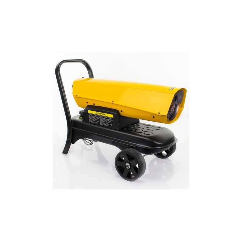 Mobilna nagrzewnica olejowa o mocy 20 kW z wbudowanym termostatem, zbiornikiem paliwa 19 litrów i elektronicznym sterowaniem. Wyposażona w czujnik płomienia, układ zabezpieczający i trwałą stalową obudowę.