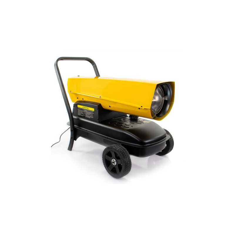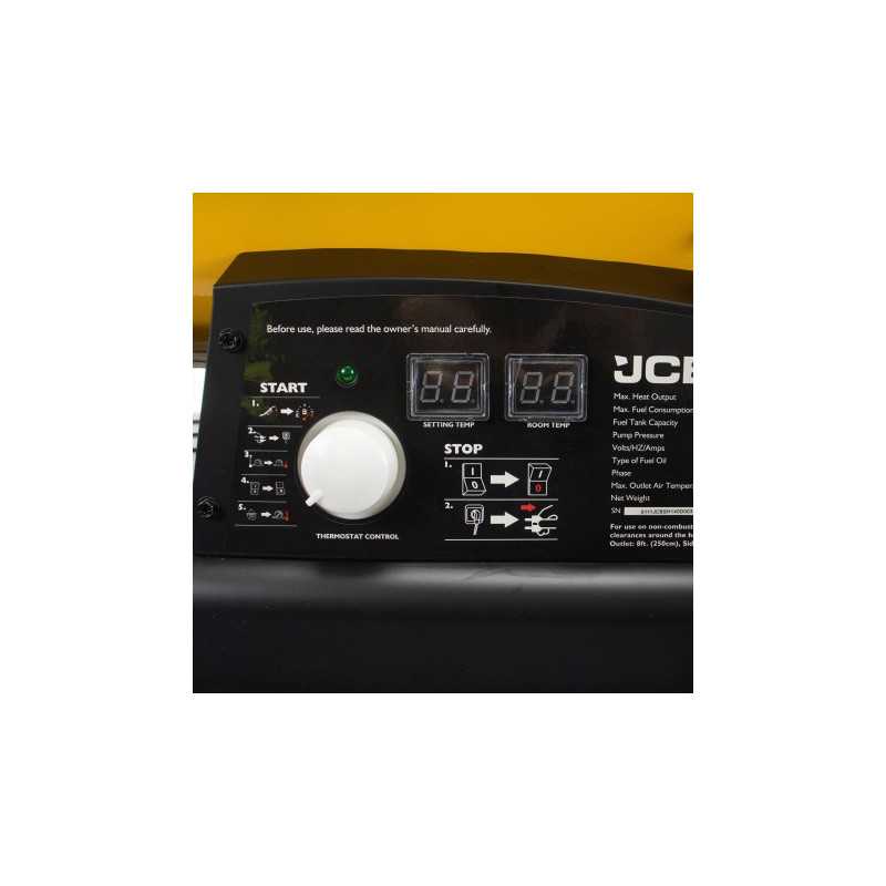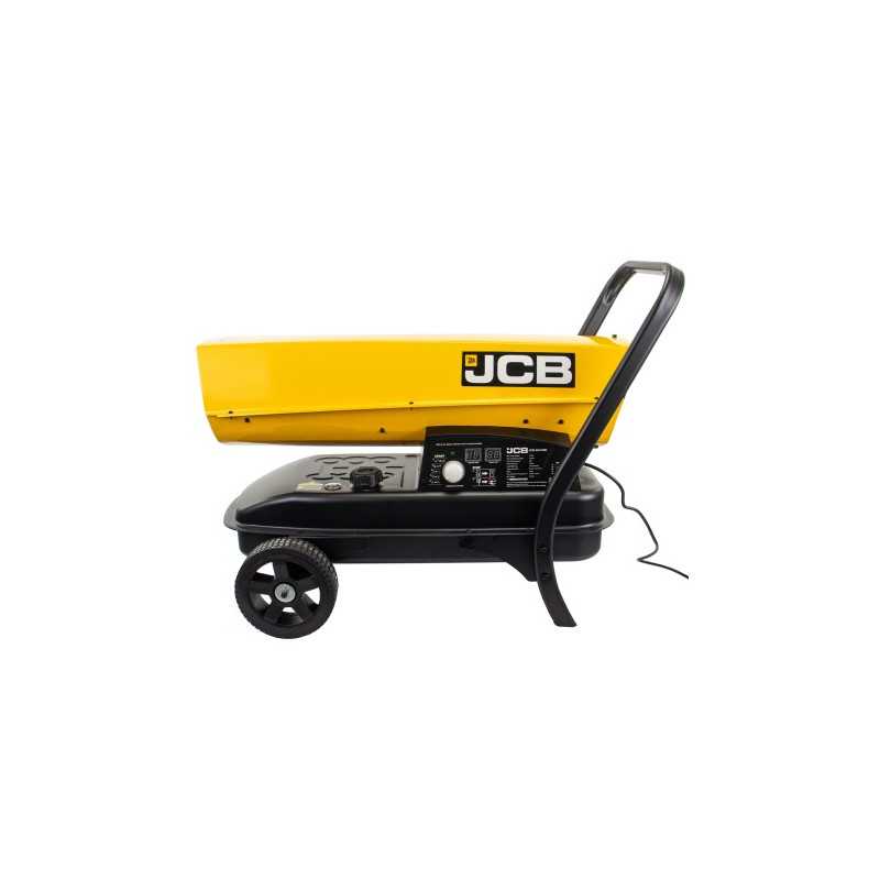 Nagrzewnica JCB [37 kW] JCB-SH140DP24 to profesjonalne, mobilne urządzenie grzewcze zasilane olejem napędowym, przeznaczone do szybkiego i intensywnego ogrzewania dużych przestrzeni przemysłowych, technicznych i ratowniczych. Urządzenie oferuje imponującą moc grzewczą 37 kW oraz wyposażone jest w pojemny, 38-litrowy zbiornik paliwa, co zapewnia wielogodzinną, nieprzerwaną pracę. Dzięki zastosowaniu technologii bezpośredniego spalania, nagrzewnica generuje natychmiastowy strumień gorącego powietrza, idealny do stosowania w halach, namiotach, garażach i w terenie. Zintegrowany elektroniczny zapłon oraz automatyczny termostat umożliwiają precyzyjną kontrolę nad temperaturą. Obudowa urządzenia wykonana jest ze stali malowanej proszkowo, odpornej na czynniki zewnętrzne i uszkodzenia mechaniczne. Wbudowane kółka oraz uchwyt ułatwiają szybki transport nagrzewnicy w trudnym terenie.