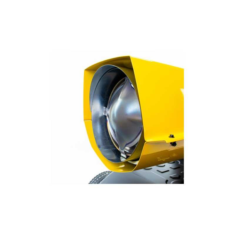 Model ten został wyposażony w elektroniczny wyświetlacz oraz wbudowany termostat z regulacją temperatury, co zapewnia precyzyjną kontrolę warunków pracy. Duży zbiornik paliwa o pojemności 38 litrów umożliwia nieprzerwane działanie do 10 godzin. Zastosowane systemy bezpieczeństwa – czujnik płomienia, przegrzania i przepływu powietrza – chronią urządzenie i użytkownika w każdych warunkach.