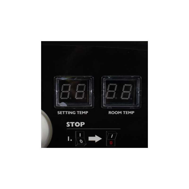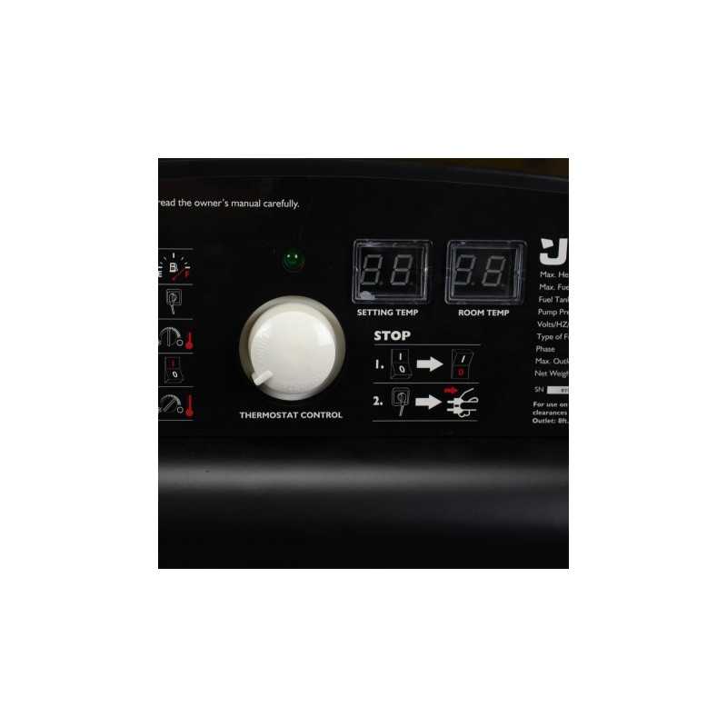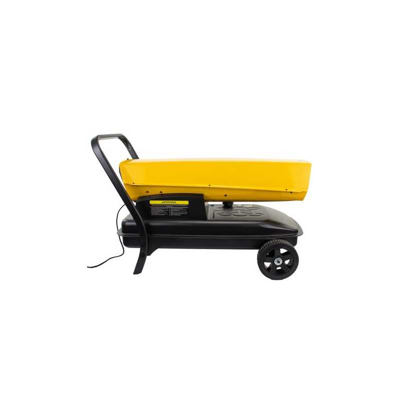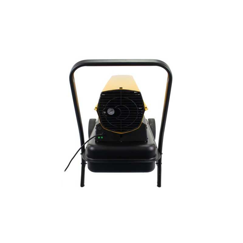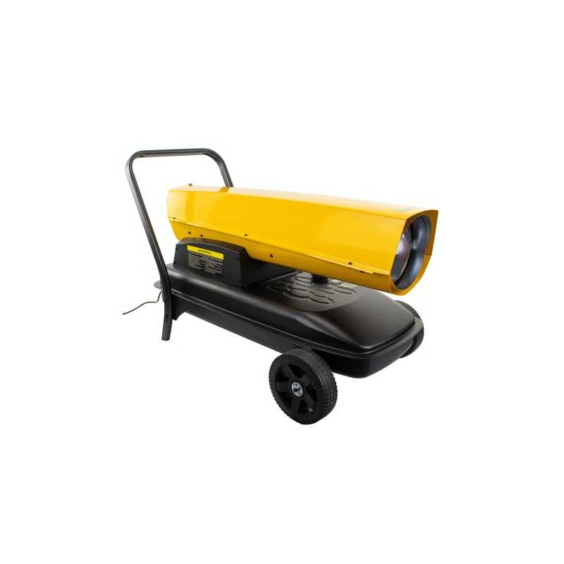 Profesjonalna nagrzewnica olejowa o mocy 63 kW z 49-litrowym zbiornikiem, elektronicznym zapłonem, termostatem i przepływem powietrza 1550 m³/h. Wyposażona w czujnik płomienia, system zabezpieczeń i mobilną stalową konstrukcję.