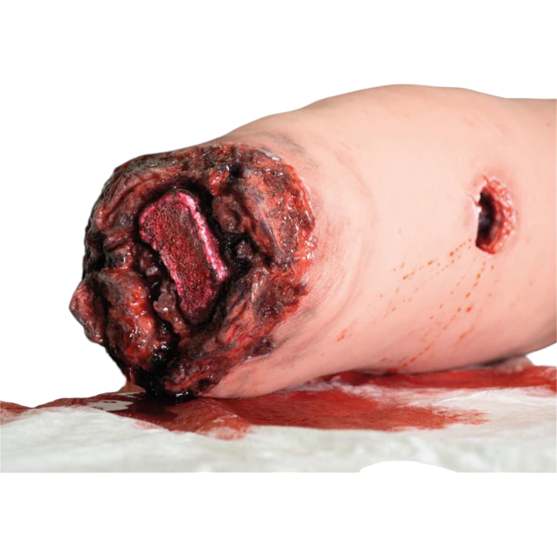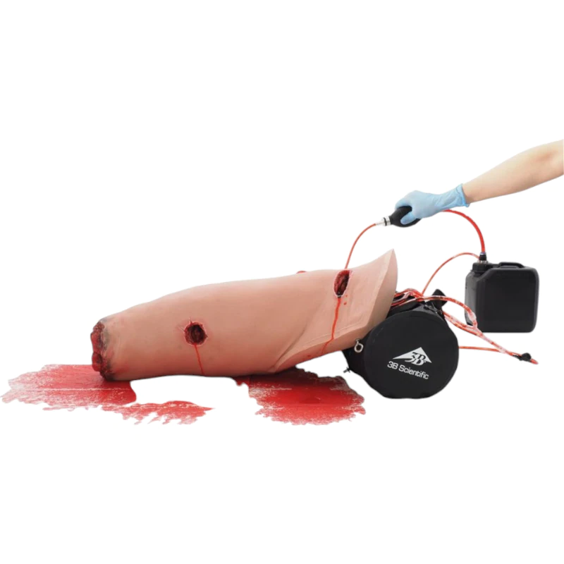 Trenażer nogi do tamowania krwotoków to zaawansowany symulator medyczny przeznaczony do nauki kontrolowania masywnych krwotoków. Został zaprojektowany z myślą o realistycznym odwzorowaniu urazów, w tym głębokich ran penetrujących oraz uszkodzeń tętniczych, które wymagają natychmiastowego zastosowania opaski uciskowej, opatrunków hemostatycznych i bezpośredniego ucisku na ranę. Konstrukcja trenażera uwzględnia anatomiczne cechy ludzkiej nogi, co zapewnia wysoką jakość szkolenia.