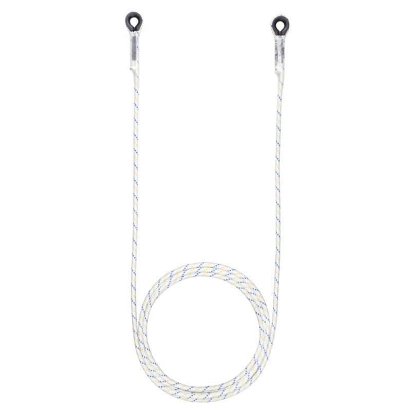 Lina kotwicząca LP 100 TT 10m bez zatrzaśników to element systemu zabezpieczającego pracę na wysokości, przeznaczony do stosowania w działaniach ratowniczych, budowlanych i technicznych. Wykonana z wytrzymałej liny rdzeniowej o średnicy 12 mm, wyposażona w przesuwany ogranicznik długości typu TT, umożliwia łatwe i szybkie dostosowanie długości roboczej. Produkt nie posiada w zestawie zatrzaśników, dzięki czemu użytkownik może dobrać osprzęt według własnych potrzeb i wymogów danego działania. Oba końce liny zakończone są zszytymi oczkami zabezpieczonymi tuleją, co zapewnia trwałość i bezpieczeństwo użytkowania. Kompaktowa długość 10 metrów czyni ją odpowiednią do wielu zastosowań w pionie i poziomie, zwłaszcza tam, gdzie przestrzeń operacyjna jest ograniczona.