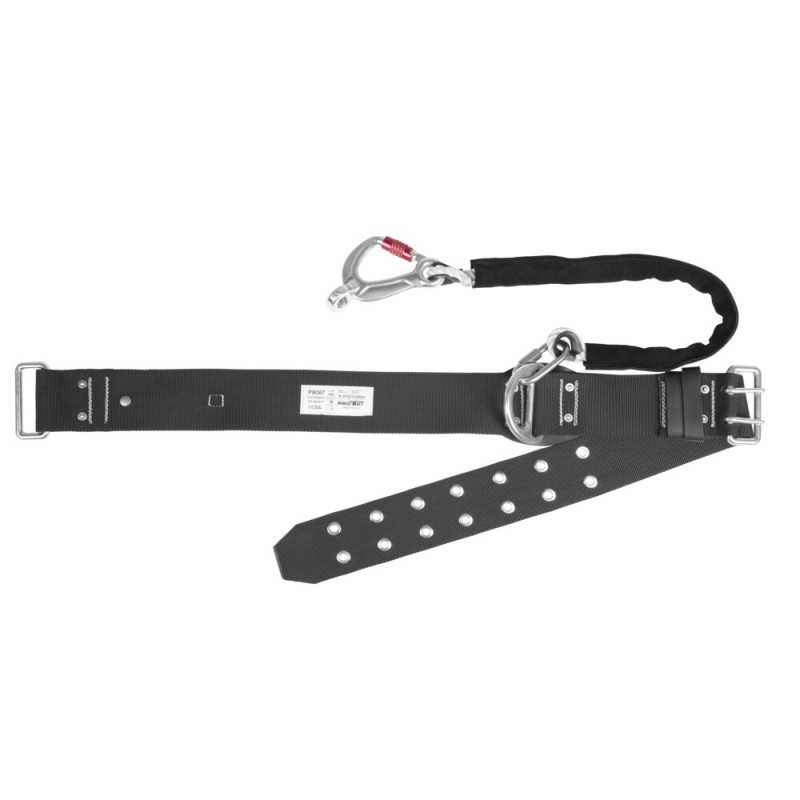 Pas LB 067 nie jest przeznaczony do długotrwałego zawisania w pozycji roboczej, ani jako element systemów alpinistycznych, linowych lub ratownictwa wysokościowego z pełnym obciążeniem dynamicznym. Nie powinien być stosowany w warunkach, gdzie istnieje ryzyko przecięcia linki ostrą krawędzią. Nie zastępuje szelek pełnego zabezpieczenia przed upadkiem z wysokości – należy go używać wyłącznie zgodnie z jego przeznaczeniem asekuracyjnym i wspomagającym. W przypadku uszkodzenia mechanicznego pasa lub linki produkt należy natychmiast wycofać z użytkowania.