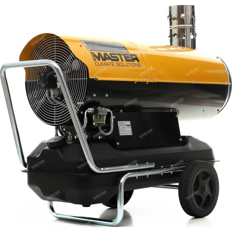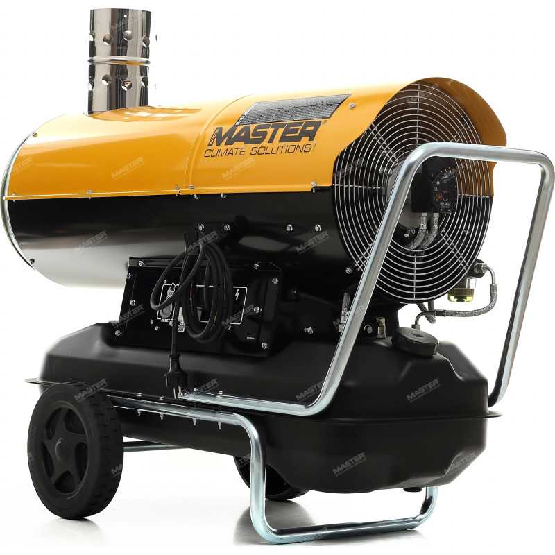 MASTER BV 290 to profesjonalna nagrzewnica olejowa z zamkniętą komorą spalania o mocy grzewczej 85 kW, zaprojektowana do intensywnego ogrzewania dużych kubatur. Urządzenie pracuje na olej opałowy lub napędowy i dzięki systemowi odprowadzania spalin dostarcza do wnętrza wyłącznie czyste, ogrzane powietrze. Konstrukcja oparta na wytrzymałej stalowej obudowie, wydajnym wentylatorze oraz sprawdzonym palniku zapewnia stabilną i bezpieczną eksploatację w budownictwie, przemyśle oraz rolnictwie.