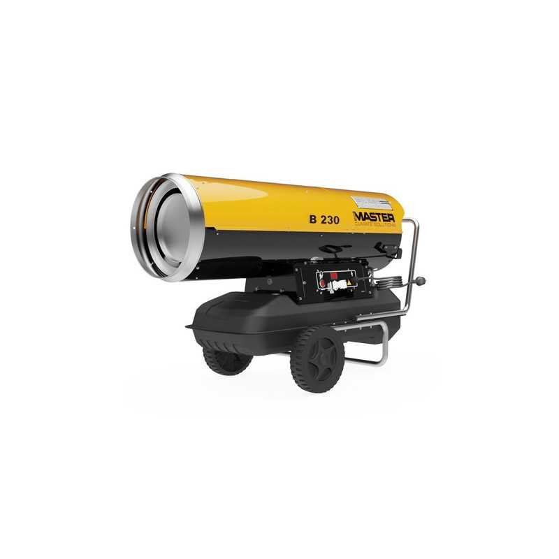 MASTER B 230 to profesjonalna nagrzewnica olejowa z bezpośrednim spalaniem o mocy grzewczej 65 kW. Urządzenie pracuje na olej opałowy lub napędowy i zostało zaprojektowane do intensywnego ogrzewania dużych kubatur. Wyposażone jest w wydajny palnik wysokociśnieniowy, stalową komorę spalania oraz mocny wentylator zapewniający wysoki przepływ powietrza. W systemie bezpośrednim całe wytworzone ciepło trafia do ogrzewanego pomieszczenia wraz z produktami spalania, co przekłada się na wysoką sprawność cieplną.