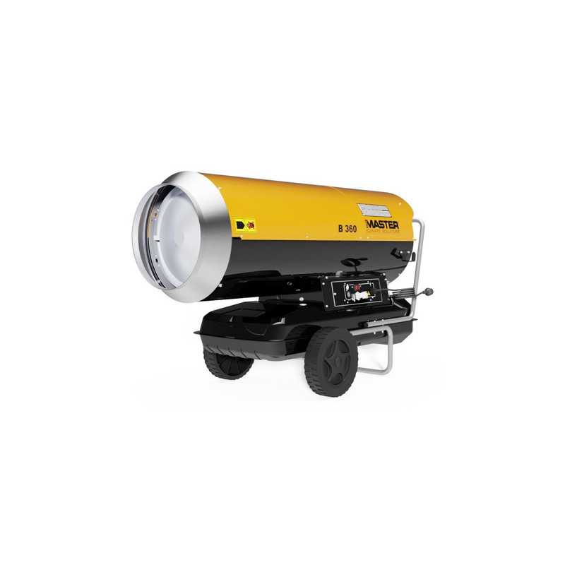 MASTER B 360 to wysokowydajna nagrzewnica olejowa z bezpośrednim spalaniem o mocy grzewczej 111 kW. Urządzenie pracuje na olej opałowy lub napędowy i zostało zaprojektowane do intensywnego ogrzewania bardzo dużych kubatur. Wyposażone jest w wysokociśnieniowy palnik, stalową komorę spalania oraz wydajny wentylator zapewniający duży przepływ powietrza. W systemie bezpośrednim całe wytworzone ciepło trafia do ogrzewanej przestrzeni wraz z produktami spalania, co przekłada się na bardzo wysoką sprawność cieplną.