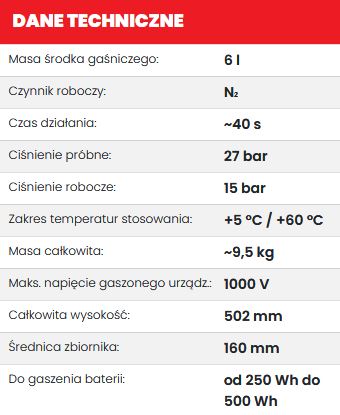 Profesjonalne urządzenie gaśnicze o pojemności 9 l przeznaczone do zabezpieczania baterii litowo-jonowych. Zawiera innowacyjny środek gaśniczy VERDIS o intensywnym działaniu chłodzącym, który skutecznie obniża temperaturę ogniw i gasi płomienie. Przeznaczone do większych pakietów akumulatorowych i instalacji Li-ion.