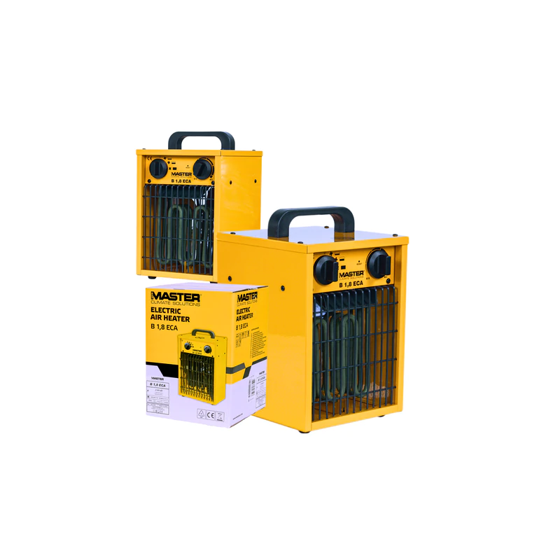 Nagrzewnica elektryczna MASTER B 1,8 ECA [1/2 kW] to przenośne urządzenie grzewcze zasilane energią elektryczną, przeznaczone do ogrzewania niewielkich pomieszczeń roboczych i użytkowych. Urządzenie pracuje w oparciu o wydajny element grzejny oraz wbudowany wentylator, który wymusza przepływ powietrza przez nagrzewnicę. Model ten oferuje dwa poziomy mocy grzewczej – około 1 kW oraz 2 kW – co pozwala dostosować intensywność ogrzewania do aktualnych warunków. Wyposażony jest w regulowany termostat oraz zabezpieczenie przed przegrzaniem. Zwarta konstrukcja, metalowa obudowa i wygodny uchwyt ułatwiają transport oraz użytkowanie w różnych lokalizacjach.