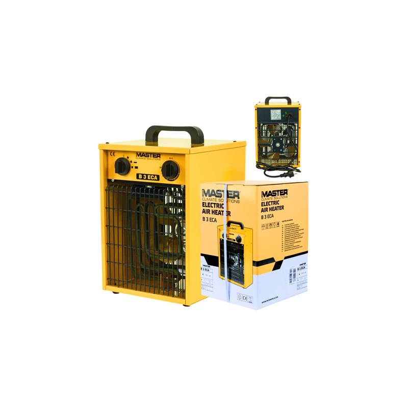Nagrzewnica elektryczna MASTER B 3 ECA [1,65/3,3 kW] to mobilne urządzenie grzewcze zasilane napięciem 230 V, przeznaczone do podnoszenia temperatury w pomieszczeniach zamkniętych. Model ten wyposażony jest w wydajny element grzewczy oraz wentylator wymuszający przepływ powietrza, co zapewnia równomierne rozprowadzanie ciepła. Użytkownik ma do dyspozycji dwa poziomy mocy grzewczej – 1,65 kW oraz 3,3 kW – a także tryb pracy bez grzania. Wbudowany termostat umożliwia utrzymanie zadanej temperatury, natomiast zabezpieczenie przed przegrzaniem chroni urządzenie podczas intensywnej eksploatacji. Kompaktowa, stalowa obudowa zwiększa odporność na uszkodzenia mechaniczne.
