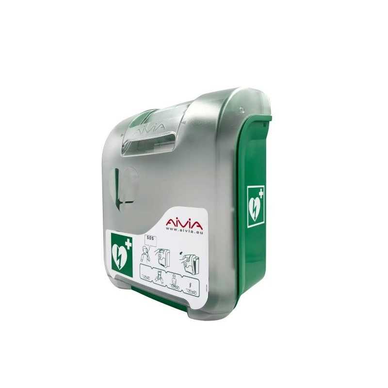 Szafka na defibrylator Aivia V3 200 Heating Fanning Alarm to zewnętrzna kapsuła ochronna przeznaczona do bezpiecznego przechowywania automatycznego defibrylatora zewnętrznego (AED). Została zaprojektowana do pracy w zmiennych i wymagających warunkach atmosferycznych. Obudowa wykonana jest z wytrzymałego tworzywa ABS, a drzwi z poliwęglanu odpornego na promieniowanie UV i ogień. Konstrukcja spełnia klasę odporności mechanicznej IK10 oraz stopień ochrony IP54, co oznacza zabezpieczenie przed uderzeniami, pyłem i wodą. Model wyposażony jest w system ogrzewania oraz regulowaną wentylację, które utrzymują odpowiednie warunki temperaturowe wewnątrz kapsuły.