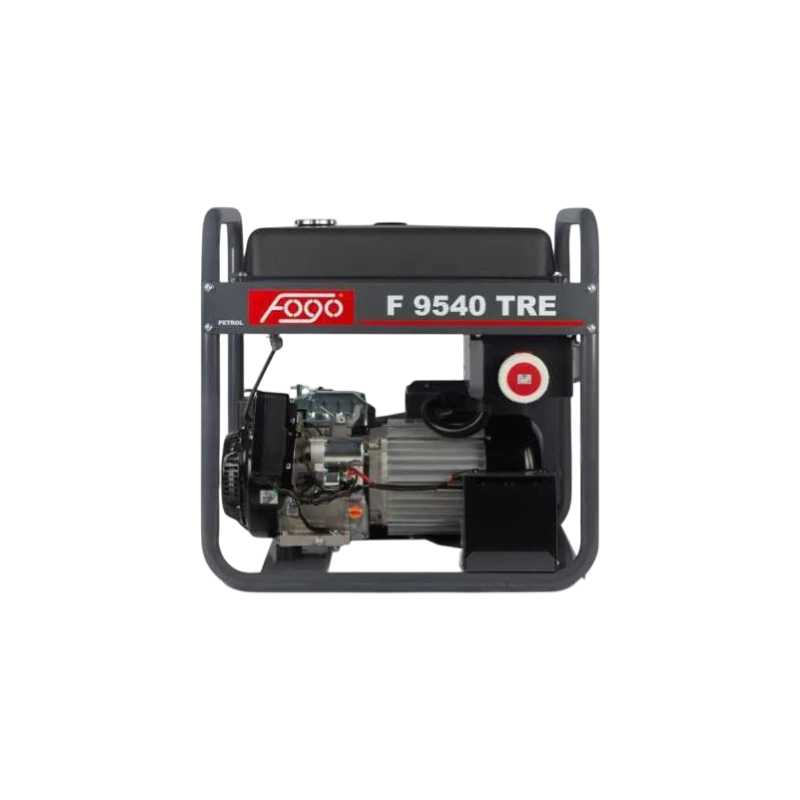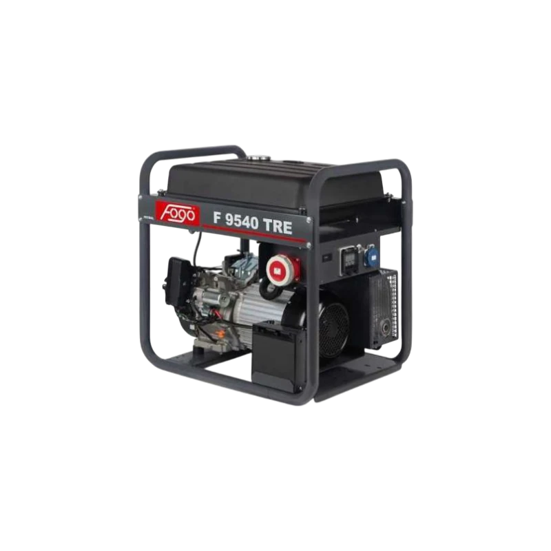 Agregat prądotwórczy FOGO F 9540 TRE to trójfazowy agregat benzynowy o mocy maksymalnej 9,5 kVA, przeznaczony do zasilania odbiorników 400 V oraz 230 V. Urządzenie napędzane jest czterosuwowym silnikiem Honda serii GX, zapewniającym stabilną pracę przy dużym obciążeniu. Wersja TRE wyposażona jest w elektryczny rozruch z akumulatorem oraz dodatkowy rozruch ręczny. Wbudowany układ automatycznej regulacji napięcia AVR stabilizuje parametry wyjściowe i chroni podłączone urządzenia przed wahaniami napięcia. Konstrukcja osadzona jest na wytrzymałej stalowej ramie przystosowanej do pracy w trudnych warunkach budowlanych i przemysłowych.