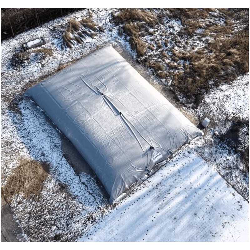 Elastyczny zbiornik przeciwpożarowy o pojemności 225 m³ z matami grzejnymi do całorocznego magazynowania wody. Wykonany z wytrzymałej tkaniny technicznej odpornej na warunki atmosferyczne. Skuteczna alternatywa dla stalowych zbiorników ppoż, niewymagająca fundamentów ani konstrukcji wsporczych.