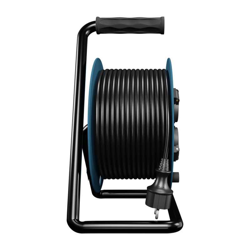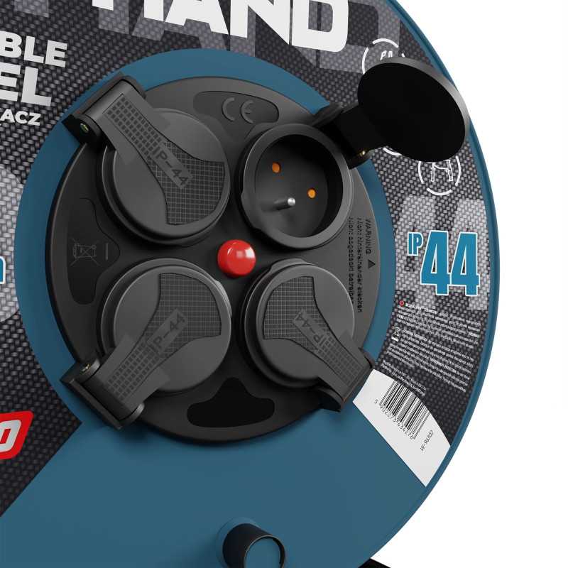 Przedłużacz bębnowy w oplocie gumowym [3x1,5; 30m; czarny; IP44] kod W-96302 to urządzenie przeznaczone do doprowadzania energii elektrycznej do urządzeń oddalonych od stałego źródła zasilania. Konstrukcja oparta jest na stabilnym bębnie umożliwiającym wygodne rozwijanie oraz zwijanie przewodu, co ułatwia organizację miejsca pracy i zapobiega splątaniu kabla. Przewód o długości 30 metrów i przekroju 3x1,5 mm² pozwala na zasilanie wielu typowych urządzeń elektrycznych stosowanych w warsztatach, garażach oraz podczas prac budowlanych i instalacyjnych. Kluczową cechą konstrukcji jest wytrzymały przewód gumowy odporny na uszkodzenia mechaniczne oraz działanie czynników zewnętrznych, dzięki czemu przedłużacz dobrze sprawdza się w trudniejszych warunkach eksploatacji. Zastosowana klasa szczelności IP44 zapewnia ochronę przed bryzgami wody oraz zanieczyszczeniami, zwiększając bezpieczeństwo użytkowania.