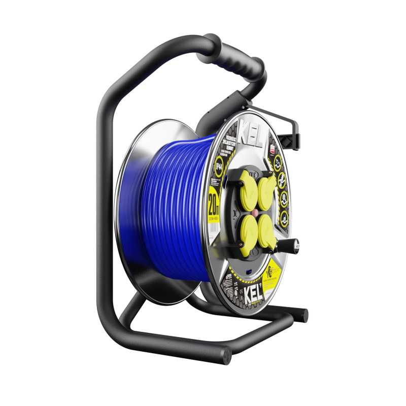 Przedłużacz bębnowy metalowy, specjalistyczny, gniazdo nieobracalne [3x2,5; 20m; niebieski; IP44] kod W-99251 wykorzystywany jest wszędzie tam, gdzie wymagane jest mobilne i bezpieczne doprowadzenie zasilania do urządzeń elektrycznych. Dzięki przewodowi o długości 20 metrów umożliwia wygodne zasilanie elektronarzędzi, sprzętu warsztatowego, urządzeń montażowych oraz maszyn używanych podczas prac budowlanych i instalacyjnych. Solidna konstrukcja metalowa sprawia, że urządzenie dobrze sprawdza się w warsztatach, zakładach produkcyjnych, magazynach oraz na placach budowy. Konstrukcja bębnowa pozwala na szybkie rozwinięcie potrzebnej długości przewodu oraz jego wygodne zwinięcie po zakończeniu pracy. Najważniejszą zaletą urządzenia jest stabilne doprowadzenie energii elektrycznej do urządzeń pracujących w wymagających warunkach technicznych.
